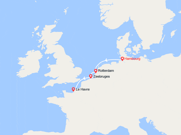 Allemagne (Hambourg) - Rotterdam (Pays Bas) - Belgique (Zeebruges) - Normandie (Le Havre) voir +