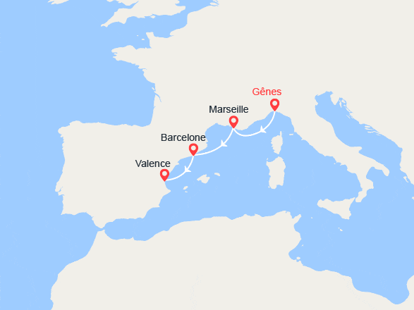Italie (Gênes) - Marseille - Barcelone - Espagne (Valence) voir +
