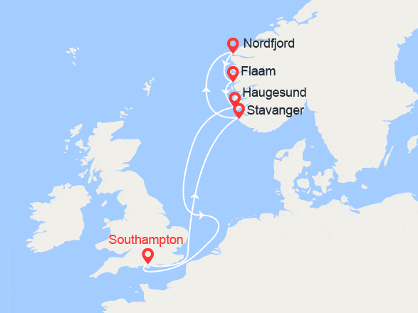 Londres (Southampton) - Norvège (Stavanger) - Norvège (Nordfjord) - Norvège (Flaam) - Norvège (Haugesund) voir +