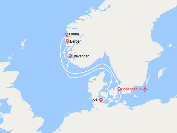 Paris - Copenhague (Danemark) - Norvège (Flaam) - Norvège (Bergen) - Norvège (Stavanger) - Allemagne (Kiel) voir +