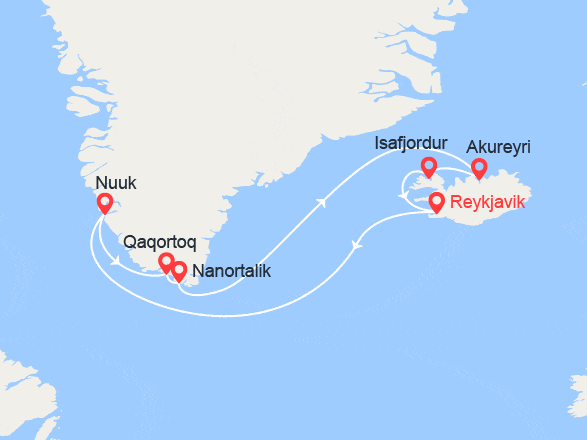 Islande (Reykjavik) - Groenland (Nuuk) - Groenland (Qaqortoq) - Groenland (Nanortaliq) - Islande (Akureyri) - Islande (Isafjordur) voir +