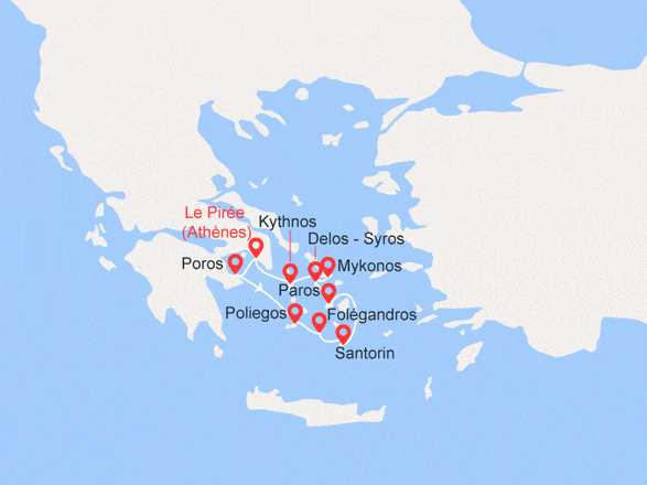 Athènes (Marina Zeas, Le Pirée) - Grèce (Poros) - Iles grecques (Poliegos) - Iles grecques (Folégandros) - Santorin (Cyclades) - Iles grecques (Antiparos - Paros) - Iles grecques (Delos) - Mykonos (Cyclades) - Iles grecques (Syros) - Iles grecques (Kythnos) - Athènes (Marina Zeas) voir +