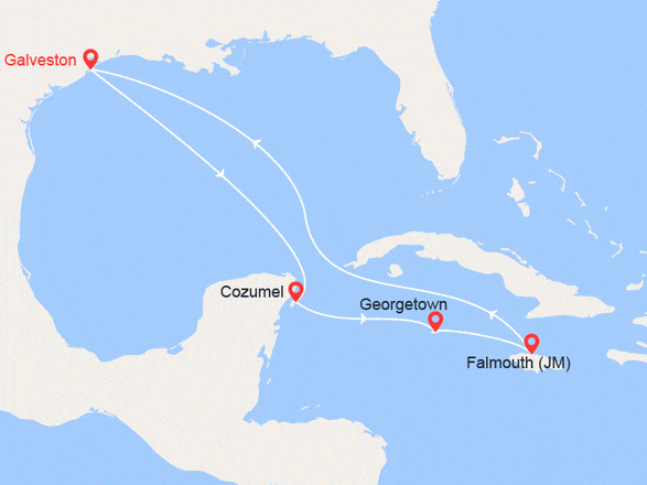 Texas (Galveston) - Cozumel (Mexique) - Iles Caïman (Georgetown) - Jamaïque (Falmouth) voir +