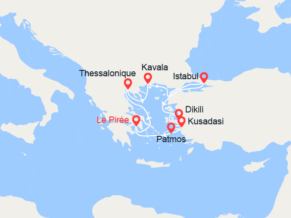Athènes (Le Pirée) - Grèce (Thessalonique) - Grèce (Kavala) - Istanbul - Turquie (Dikili) - Turquie (Kusadasi) - Iles grecques (Patmos) voir +