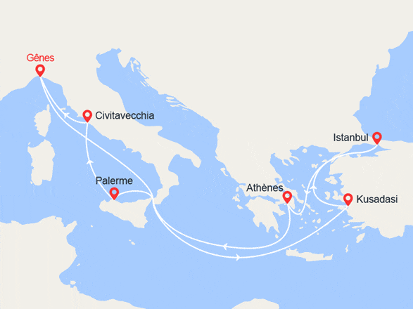 Athènes (Le Pirée) - Sicile (Palerme) - Rome (Civitavecchia) - Italie (Gênes) - Turquie (Kusadasi) - Istanbul voir +
