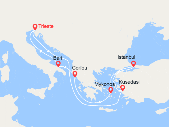 Italie (Trieste) - Turquie (Kusadasi) - Istanbul - Mykonos (Cyclades) - Iles grecques (Corfou) - Italie (Bari) voir +